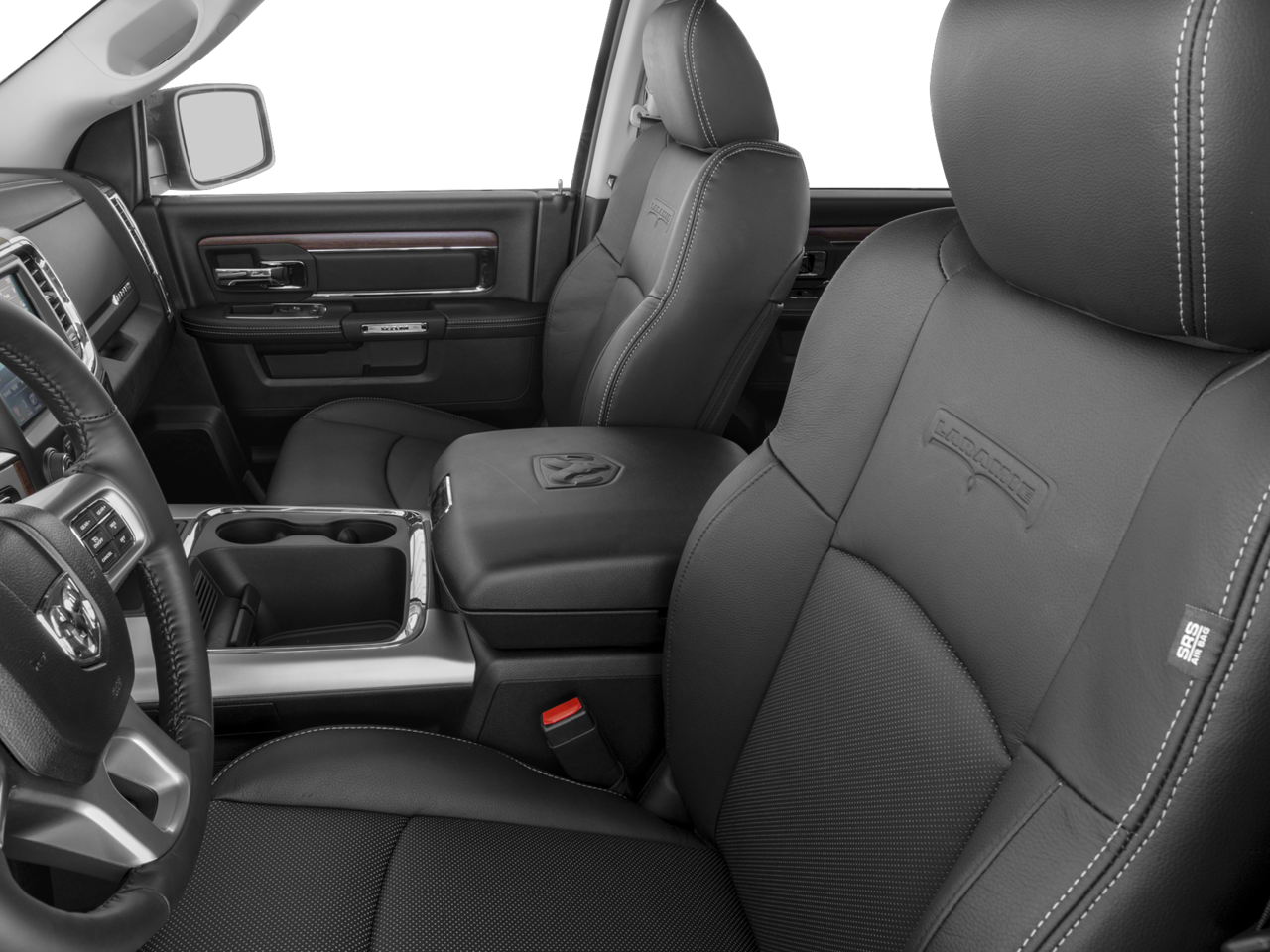 Convenience Group (Auto High Beam Headlamp Control, Keyless Enter-N-Go, Rain Sensitive Windshield Wipers, and Remote Proximity Keyless Entry), Quick Order Package 28H Laramie, 1 Yr. Trial (Registration Required), 10 Speakers, 115V Auxiliary Power Outlet, 20 x 9 Chrome Clad Aluminum Wheels, 4-Wheel Disc Brakes, 5-Year SiriusXM Traffic Service, 5-Year SiriusXM Travel Link Service, 8.4 Touchscreen Display, ABS brakes, Active Grille Shutters, Adjustable pedals, Air Conditioning, Alloy wheels, AM/FM radio, Anti-Spin Differential Rear Axle, Audio Jack Input for Mobile Devices, Audio memory, Auto-dimming door mirrors, Auto-dimming Rear-View mirror, Automatic temperature control, Body Color Fender Flares, Brake assist, Bright Rotary Shifter, Bumpers: chrome, Center Hub, Compass, Delay-off headlights, Driver door bin, Driver vanity mirror, Dual front impact airbags, Dual front side impact airbags, Electronic Shift, Electronic Stability Control, Emergency communication system: Uconnect Access, Folding Flat Load Floor Storage, Front & Rear Rubber Floor Mats, Front anti-roll bar, Front Center Armrest w/Storage, Front dual zone A/C, Front fog lights, Front reading lights, Front wheel independent suspension, Fully automatic headlights, Garage door transmitter, GPS Antenna Input, GPS Navigation, HD Radio, Heated door mirrors, Heated Front Seats, Heated front seats, Heated Steering Wheel, Heated steering wheel, High Back Seats, Illuminated entry, Integrated Voice Command w/Bluetooth®, Leather steering wheel, Leather Trim 40/20/40 Bench Seat, Low tire pressure warning, Media Hub (USB, AUX), Memory seat, Occupant sensing airbag, Outside temperature display, Overhead airbag, Overhead console, Panic alarm, ParkSense Front/Rear Park Assist System, ParkView Rear Back-Up Camera, Passenger door bin, Passenger vanity mirror, Pedal memory, Power 10-Way Memory Driver & 6-Way Passenger Seats, Power door mirrors, Power driver seat, Power passenger seat, Power steering, Power Sunroof, Power windows, Radio data system, Radio: Uconnect 3C Nav w/8.4 Display, Radio: Uconnect 3C w/8.4 Display, Rear 60/40 Split Folding Seat, Rear anti-roll bar, Rear seat center armrest, Rear step bumper, Remote keyless entry, Remote Start System, Remote USB Port, Security system, SIRIUSXM Satellite Radio, SIRIUSXM Traffic, SiriusXM Travel Link, Speed control, Split folding rear seat, Spray In Bedliner, Steering wheel mounted audio controls, Tachometer, Tilt steering wheel, Tip Start, Traction control, Trip computer, Turn signal indicator mirrors, Uconnect Access, Uconnect Access 1 Year Trial, Variably intermittent wipers, Ventilated Front Seats, Ventilated front seats, and Voltmeter. 19/27 City/Highway MPG